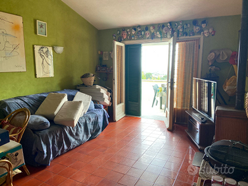 Villino a Terracina, panoramico, camera da letto, salotto, bagno e cucina, terrazzo con vista totalmente attrezzato e giardino con doccia esterna con acqua calda; Lavatrice, forno a micro onde, aria condizionata e pale a soffitto