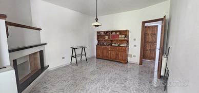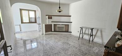 Salendo al piano rialzato, si accede ad un ampio soggiorno, la zona giorno prosegue con una cucina abitabile, impreziosita da un camino moderno che crea un'atmosfera calda e raffinata, un cucinino sepato, un bagno con vasca, un ripostiglio e due camere da letto ben proporzionate.