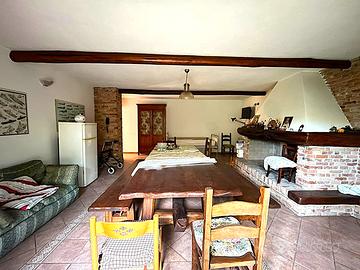 All'ingresso della proprietà si viene accolti da una una zona rustica ove presenti inoltre un bagno di servizio, una cantina comoda e spaziosa, e un box auto con accesso diretto, capace di ospitare comodamente un'auto e spazio aggiuntivo per deposito o attrezzature.