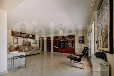 Terrasini- A pochi passi dalla splendida Baia di Cala Rossa, in zona esclusiva e residenziale, proponiamo in vendita signorile Villa con accesso indipendente ed ampio parcheggio riservato. La villa è circondata da un ampio giardino con prato all'inglese e piante ornamentali dove vi è inoltre la possibilità di realizzare una piscina di mt 11x 6. L'esclusiva dimora è ad oggi divisa in 2 unità immobiliari indipendenti, ciascuna composta da un'ampia zona living, cucina, 2/3 camere da letto, 2 bagni, ripostiglio, lavanderia e cantina. Può quindi essere una soluzione ideale per ospitare anche 2 famiglie. Possibilità di vendita frazionata delle singole unità. Cod. Rif. VP/46.
