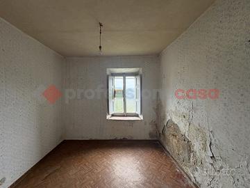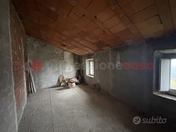 Piano Primo (Ingresso lato Paese): Salendo le scale interne si raggiunge il primo piano, dove si trova un secondo ingresso indipendente che affaccia direttamente sul paese. Questo livello ospita un ambiente con camino, due camere da letto e il bagno.