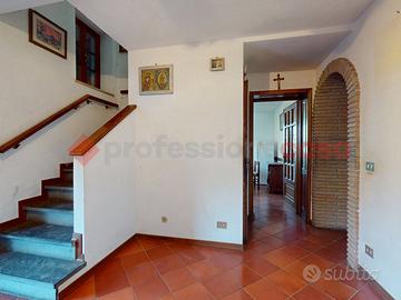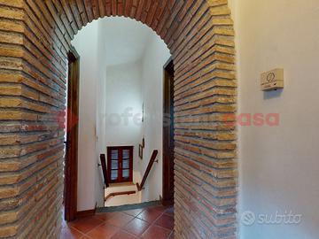 L'abitazione, mantenuta in ottime condizioni, si sviluppa su più livelli e offre ambienti ampi e luminosi. La zona giorno comprende un accogliente soggiorno con camino e una cucina abitabile, perfetta per la vita quotidiana. La zona notte è composta da quattro camere, ideali per famiglie numerose o per chi necessita di spazi aggiuntivi per studio o hobby, oltre a due bagni.