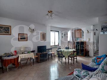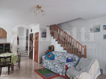 - al primo piano troviamo l'ampio soggiorno con cucina a vista e terrazzo panoramico, due camere da letto e un bagno;
