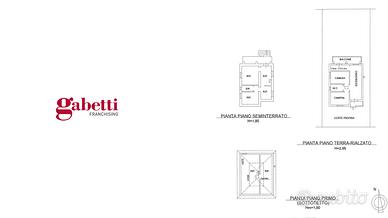 Al piano rialzato, di circa 53 mq, si trova una luminosa zona giorno composta da sala con angolo cottura, due camerette, un bagno finestrato e un balcone con affaccio sul giardino. Una botola con scala retrattile consente l'accesso al sottotetto, della stessa metratura, con un'altezza minima di 0,75 metri e una massima di 2,05 metri: uno spazio versatile, perfetto come zona hobby, deposito o locale aggiuntivo.
