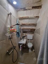 Terratetto centrale con 2 posti auto in corte. Spazio chiuso sul retro per pranzi e cene in compagnia con accesso dalla cucina e altre 3 stanze esterne, una con forno per pizza e pane. Bagno di servizio al piano terra sottoscala. Cucina, tinello e ampio soggiorno con scale che vanno al primo piano nella zona notte. 2 camere matrimoniali con travi a vista sabbiate Un bagno grande con vasca e doccia con I piani fatti a mano con i sassi di fiume. 2 stanze armadi con possibilità terza cameretta con accesso tramite scala alla soffitta. Soffitta con altezze in regola per essere abitata, attacchi per fare un bagno, praticamente un altro appartamento. Rinnovato nell'estate 2025.