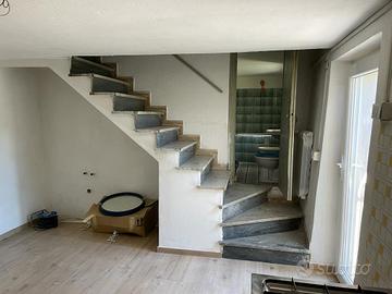 Al piano terra abbiamo soggiorno cucina con camino, bagno ( funzionante ma da rivedere); dall'aia in comune si accede ad un vano uso cantina.