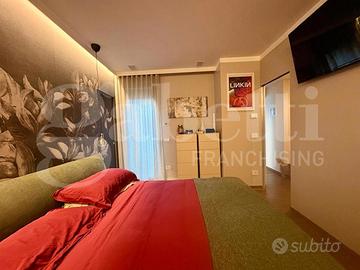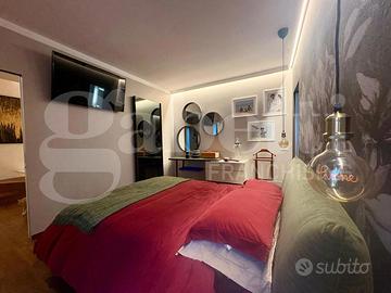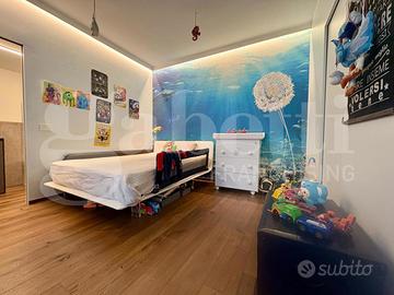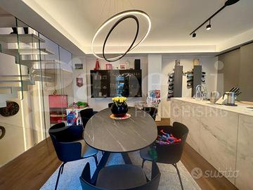 La zona notte si sviluppa al piano primo e si compone di due comode camere matrimoniali, entrambe con cabina armadio e bagno privato, finestrato e servito da doccia; la zona giorno, ai due piani superiori, presenta un'ampia cucina con vetrata affacciata sul terrazzo privato finemente arredato e la zona living con travi a vista e quarto bagno di servizio.