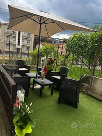 Al piano terra troviamo una piccola area cortilizia, porta d'ingresso indipendente con preingresso, soggiorno, bagno, cucina molto spaziosa, sottoscala e terrazza posteriore, dove si trova la scala per scendere in cantina (molto spaziosa).