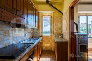 L'abitazione si sviluppa al primo piano ed è composta da ingresso, soggiorno luminoso, tinello con terrazzo, cucinino, tre camere da letto e bagno, terrazzo. Al piano terra sono presenti un comodo garage e ampi fondi. Completano la proprietà una soffitta, un giardino privato ben curato.