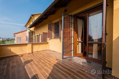 Attraverso l'ingresso indipendente si accede alla proprietà direttamente sull'ampia corte pertinenziale posta anteriormente all'edificio ed esposta a sud, pavimentata con autobloccanti, dove trovano disposizione anche un pozzo ed un portico.