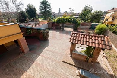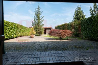 Completa la proprietà una tettoia che insiste sulla porzione di giardino sopra descritto retrostante la proprietà.