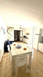 Ottimo uso investimento uso casa vacanza o abitazione privata, casa indipendente su due livelli ristrutturata, composta al piano terra da 2 ingressi entrambi sulla cucina soggiorno, servizio e terrazzo dove è presente una doccia esterna e la posiibilità del posto auto. Al primo piano ci sono due camere da letto, servizio e una veranda. Completa la casa una terrazza al piano sovrastante con vista mare.