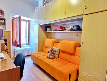 All'ingresso dell'abitazione troviamo un piccolo disimpegno che conduce da una parte ad un grottino interrato adibito a CANTINA, dall'altra una comoda scala ci porta nella zona giorno dell'abitazione, dove troviamo il living con cucina annessa, uno studio/cameretta e un comodo bagno di servizio.