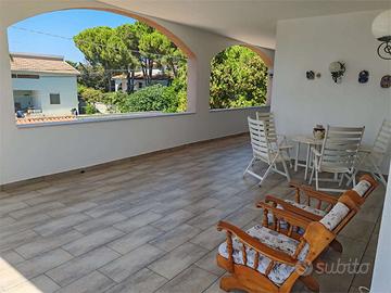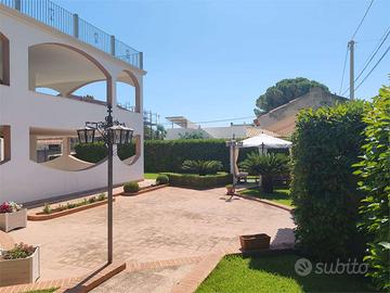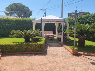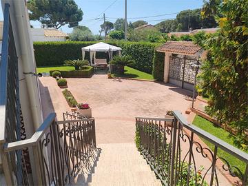 Proponiamo in locazione transitoria una villa arredata posta all'interno di un piccolo residence privato con cancello automatico , a soli 100 metri dal mare, Questa villa è composta da 2 livelli , di cui un mini appartamento al piano terra, al piano primo troviamo la parte principale , 8 vani catastali , distribuiti tra camere, cucina , salone ampio e verande . Mq 170 circa