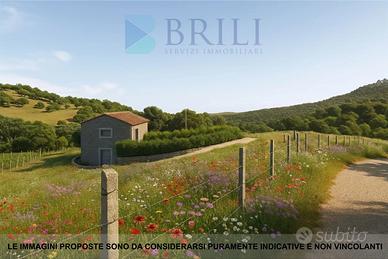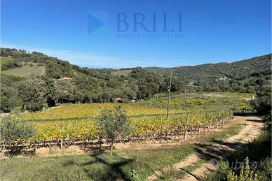 All'interno del terreno, interamente recintato, si trovano un vigneto impiantato nel 2022 con 1.140 ceppi di Sangiovese, Cabernet e Perlona, che produce mediamente circa 800 litri di vino rosso all'anno, oltre a ulivi, ciliegi e fichi. Una parte dell'area è boschiva, caratterizzata da vegetazione autoctona e suggestive rocce granitiche naturali. La presenza di un piccolo fiume e la possibilità di realizzare un pozzo grazie alla ricca falda acquifera rendono la proprietà particolarmente interessante anche dal punto di vista agricolo.