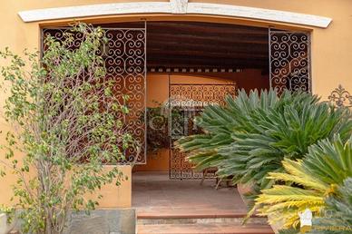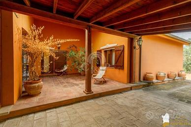 Rif: 184 (192987723) - Proponiamo in vendita una splendida villa immersa nel verde, situata all'ingresso di Teulada e a soli 4 km dal mare e dal porticciolo di Porto Tramatzu. La proprietà si sviluppa su due livelli: Piano terra: doppio ingresso, ampio salone, grande cucina abitabile, tre camere da letto e due bagni. Livello sottostante (fuori terra su tre lati): spaziosa zona soggiorno, due camere e ampio garage adatto ad ospitare auto, moto e barca. Il terreno di circa 2,5 ettari è completamente recintato e comprende una pineta e un campo da tennis. Dotazioni principali: Riscaldamento e raffrescamento con tre condizionatori, due caldaie a gas, una stufa a pellet e due caminetti Impianto di irrigazione predisposto e due pozzi, uno con pompa sommersa Due cisterne e due serbatoi per un totale di 64.000 litri Predisposizione impianto d'allarme Cassaforte, antenna parabolica e sottotetto Costruzione con muri perimetrali a doppio Uni Collegamento alla rete idrica (Abbanoa) Una soluzione ideale per chi cerca ampi spazi e la vicinanza al mare, perfetta sia come residenza principale sia come casa vacanza.