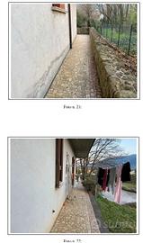 TFR 191/2021 FABBRICATO Trattasi di fabbricato ad uso abitativo a triplice elevazione con un piano seminterrato, piano terra e piano primo (vedi foto n. 1, 2, e 3), con corte circostante di circa 880,00 mq tenuta viale, spazi di manovra, giardino, marciapiede ed a bosco, con struttura portante mista in pietra e blocchi di C.A, con pilastri e travi in C.A, tamponatura in muratura, copertura a tetto a due falde, con sovrastante manto di tegole.