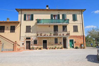 In zona di campagna prossima al centro abitato di Torrita di Siena, si propone la vendita di complesso immobiliare di complessivi mq. 460 costituito da una porzione di fabbricato con due appartamenti di mq. 80 ciascuno, locali ad uso cantina, magazzino e legnaia di complessivi mq. 130 posti al piano terreno e porzione di capannone ad uso rimessa di mq. 170, il tutto con accesso tramite corte comune. Gli appartamenti sono così composti: appartamento al P1° con ingresso, soggiorno, cucina, camera, bagno e terrazza; appartamento al P2° con ingresso, soggiorno-pranzo con angolo cottura, due camere e bagno. Entrambi in buono stato di manutenzione e con riscaldamento autonomo a gpl. Completa la proprietà un appezzamento di terreno agricolo di mq. 8500 posto di fronte al fabbricato.
