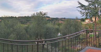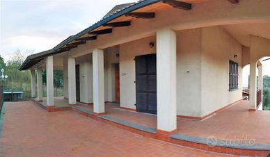 In posizione collinare con bella vista panoramica, proponiamo la vendita di villa contemporanea immersa nel verde, con ampio resede privato di circa mq. 1300 con oliveto e zone lastricate. La struttura ha una superficie complessivia di mq. 480 così distribuiti: piano terreno con tipica taverna in stile toscano con caminetto e bagno, cantina, garage di mq. 50, due ripostigli e centrale termica; piano primo composto da ampio porticato di mq. 50 che conduce alla zona giorno costituita da salotto con caminetto, sala da pranzo e cucina e zona notte con tre camere, una terrazza e bagno finestrato con vasca. Scala interna di collegamento al piano mansardato dotato di bagno e predisposizioni per ricavare appartamento con soggiorno con angolo cottura e due camere. L'abitazione si trova in ottime condizioni generali ed è da subito disponibile.