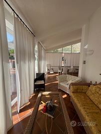 ingresso su salone con ampia veranda attigua, una cucina soggiorno, due camere da letto e doppi servizi (entrambi con doccia),