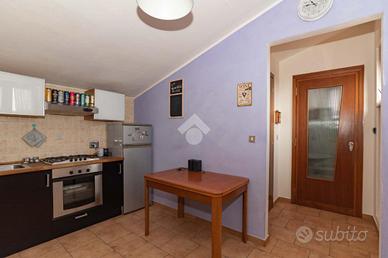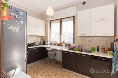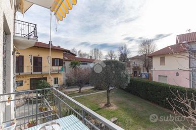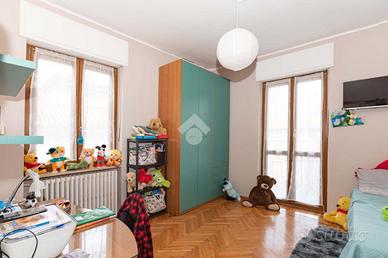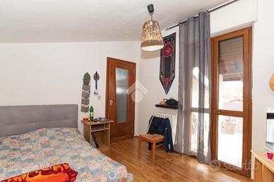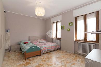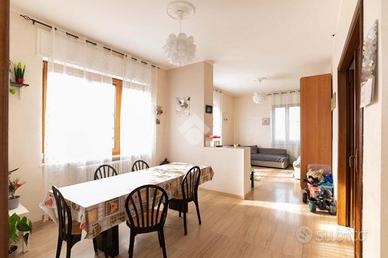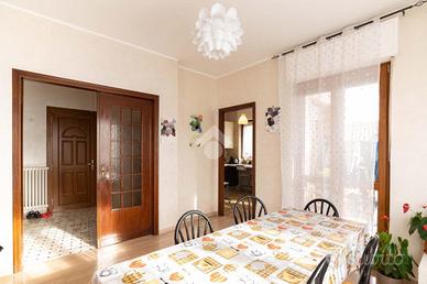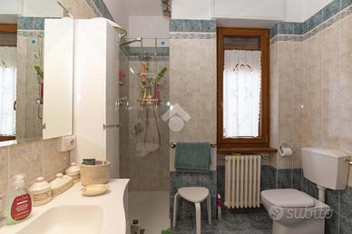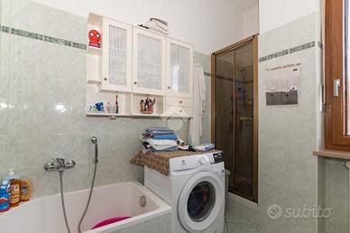 Il piano centrale è composto da un ampio ingresso, salone, cucina, due camere dalle generose dimensioni e dal bagno corredato di doccia; la soluzione è circondata da due balconi e da un terrazzino.
