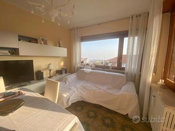 L'ingresso si apre su un ampio soggiorno luminoso grazie alle ampie vetrate con una vista stupenda, con camino ed accesso al terrazzo. La cucina è separata ed abitabile con accesso sul terrazzo.