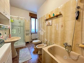 Il secondo appartamento è un trilocale composto da una accogliente e luminosa zona giorno con accesso sul terrazzo, una cucina separata e una comoda camera matrimoniale, una camera singola, e un bagno completo di doccia e di vasca.
