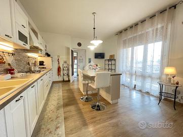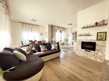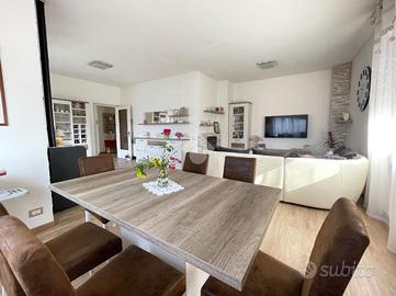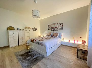 Al secondo piano troviamo il terzo appartamento da cui si può accedere sia da scala interna che esterna. Oltrepassato l'ingresso veniamo catturati dalla bellezza e dall'accoglienza che offre l'abitazione, la zona giorno si suddivide in living e zona pranzo con grandi finestre che catturano la luce naturale, separata ma adiacente troviamo la cucina con accesso diretto sul terrazzo con vista panoramica perfetto per gustare fresche colazioni o cene all'aperto in compagnia. La zona notte è composta da un'ampia e deliziosa camera matrimoniale, e due camere singole di cui una con balcone, servono il piano due bagni, il primo con vasca e il secondo con doccia.
