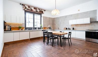 Villa trifamiliare con giardino di 460 mq su quattro lati, composta da tre unità abitative disposte su tre livelli: