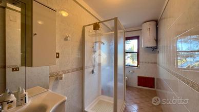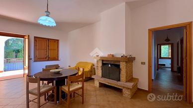 Il primo piano, esteso per 120 metri quadrati, è caratterizzato da una cucina, un ampio soggiorno con camino e veranda adiacente, tre camere da letto, due bagni, un ripostiglio e un comodo armadio a muro.