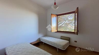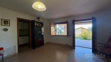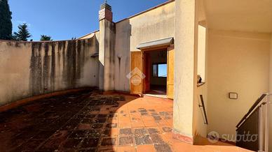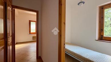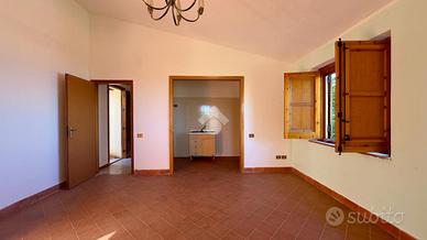 Il piano terra ospita una cucina-soggiorno, due camere da letto, un bagno e un ripostiglio;adiacente all'abitazione si trova inoltre un garage, ideale come deposito o come spazio di servizio aggiuntivo.