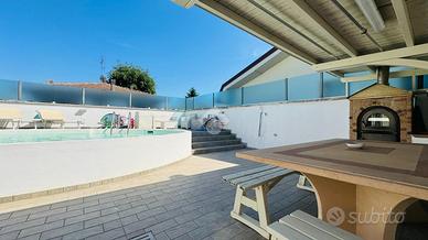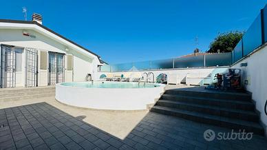 In paese a Castel Bolognese, proponiamo una villa trifamiliare di 400 mq, ideale per chi cerca spazio e comfort. Costruita nel 1999 e ristrutturata nel 2021, questa proprietà si distingue per le sue finiture di pregio e la recente ristrutturazione. La villa si sviluppa su 2 livelli e comprende tre unità abitative, offrendo un totale di cinque camere da letto e cinque bagni. Gli ampi spazi interni includono quattro ulteriori vani, perfetti per adattarsi a diverse esigenze. Due terrazzi, di cui uno suggestivo attrezzato a solarium con piscina, offrono spazi esterni ideali per il relax. Il giardino e il cortile esclusivo garantiscono privacy e tranquillità. Completano la proprietà un box auto e tre posti auto all'interno della corte. L'ascensore interno collega la piscina con uno dei 2 appartamenti al piano terra. L'aria condizionata è presente in ognuna delle unità abitative. Situata in una posizione riservata, questa villa rappresenta un'opportunità unica nel cuore del paese.