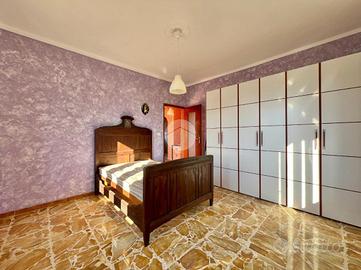 Salendo al piano primo, dal vano scala si accede al primo terrazzo, accessibile esclusivamente dal vano scale e non collegato internamente all'appartamento. L'unità abitativa presenta una distribuzione simile a quella del piano terreno, con disimpegno, zona giorno, due camere da letto e bagno in stato originale.