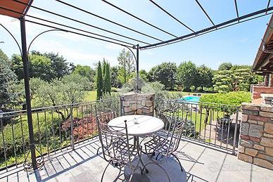 Il casale è circondato da ampie terrazze che si affacciano sul parco, arricchite da pergolati e vialetti che conducono alla splendida piscina, cuore della residenza estiva. La piscina, dotata di trampolino e solarium, è complet