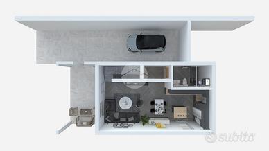 All'esterno, un portico accogliente si affaccia su un giardino privato, ideale per momenti di relax all'aria aperta. Gli interni, distribuiti su due piani con doppi servizi, sono progettati per offrire funzionalità e stile, con finiture personalizzabili che permettono di adattare ogni ambiente al proprio gusto personale.