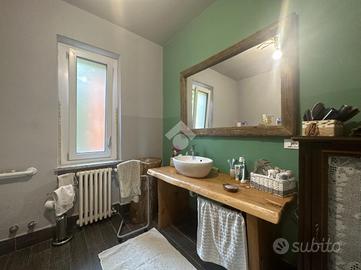 Al piano terra un rimessaggio ed un alloggio bilocale con bagno indipendente.