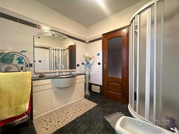 Al primo piano si trova l'appartamento più grande, dotato di una cucina spaziosa separata dal soggiorno luminoso, tre camere da letto di generose dimensioni e doppi servizi, entrambi finestrati.