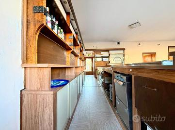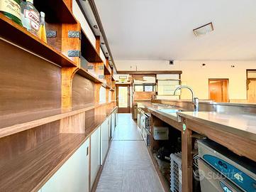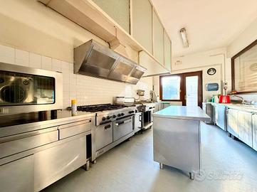 Completano il piano i servizi igienici per la clientela e una cucina professionale completamente attrezzata, progettata per garantire efficienza e funzionalità.