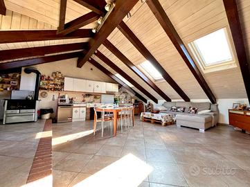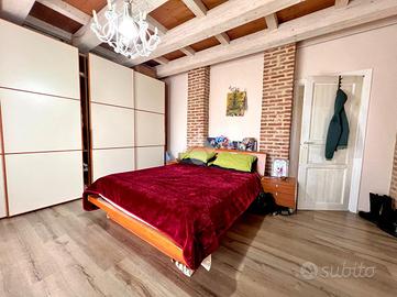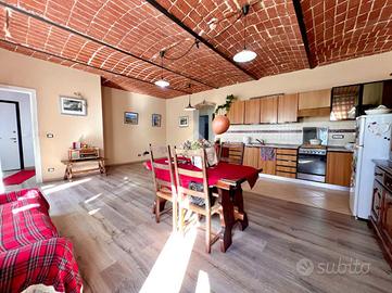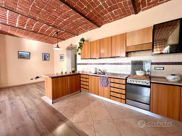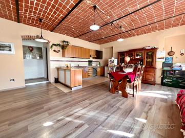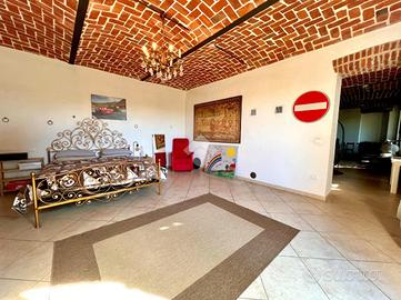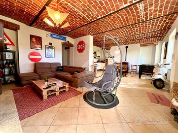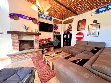 La casa si trova nella zona centrale di Moncucco Torinese e la sua posizione dominante è caratterizzata da una piacevole vista panoramica sulle colline. L'immobile, libero su quattro lati, è un recupero edilizio terminato nel 2013 di un tipico cascinale piemontese del '900 provvisto di vespaio. La disposizione è su tre livelli. Il fabbricato presenta delle caratteristiche rustiche come i mattoni a vista e il tetto su travi, il quale è stato coibentato. La generosa metratura consente di sfruttare la casa anche come trifamiliare in base alle proprie esigenze, inoltre le utenze sono già predisposte. Il cortile/giardino privato è di circa 700 mq complessivi ed è incluso anche il terreno agricolo adiacente di altri 1.300 mq. E' presente un'autorimessa doppia di circa 30 mq. Il carraio è predisposto per essere automatizzato. Il piano terra è composto da un primo alloggio caratterizzato da un'ampia zona giorno con l'angolo cottura, una camera da letto generosa, una seconda camera ora utilizzata come lavanderia e da un bagno dotato di doccia. Il piano primo, accessibile da scala esterna in muratura e da un piacevole terrazzino, è composto da un'ampia zona giorno con l'angolo cottura, tre camere da letto grandi e da due bagni. Il piano secondo, accessibile da scala interna in ferro rivestita, è composto da un'ampia zona giorno con l'angolo cottura, un bagno e una camera da letto generosa. Le rifiniture interne sono in ottimo stato vista la recente ristrutturazione. I serramenti sono in PVC con doppio vetro. Il riscaldamento è ad aria con stufe a legna e pellet, con la predisposizione del metano, già presenti 3 caldaie a metano per uso domestico. Non è presente la fogna ma varie fosse biologiche di decantazione. Questa opportunità rappresenta una soluzione abitativa ideale per chi cerca un equilibrio tra ampi spazi interni e tra natura e comodità, dato che Castelnuovo dista 5 minuti di auto oppure Chieri dista a 15 minuti.