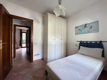 I tre appartamenti sono così disposti: i due trilocali sono posti al piano terra e circondati dal giardino privato, mentre il quadrilocale è posto al primo e secondo piano ed è dotato di tre terrazzi, oltre a soffitta e terrazza abitabile. Vi è un ripostiglio sottoscala di uso comune al piano terra.