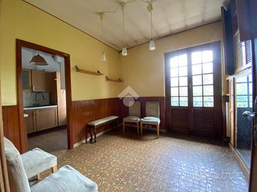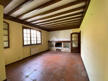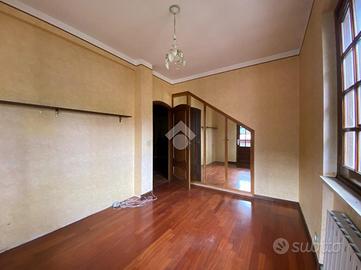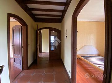 Al primo piano tramite scala in pietra esterna si accede alla prima abitazione con ingresso in ampio salone, angolo bar e zona caminetto con sfogo sulla terrazza/giardino, al piano si trova una camera utile e il bagno con finestra, sempre al piano troviamo il collegamento con la taverna, la cantina e il box doppio nel seminterrato, il collegamento con l'appartamento adiacente formato da cucina abitabile, soggiorno, due camere e bagno, l'appartamento ha anche ingresso esterno indipendente con terrazza;