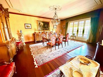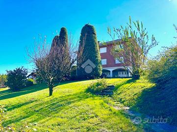 ROBASSOMERO: VILLA TRIFAMILIARE DI 650 MQ IMMERSA IN PARCO DI 2.700 MQ , PANORAMICA. La casa è composta dal primo appartamento (315 mq) al piano rialzato di ingresso salone doppio, cucina abitabile, disimpegni, tre camere, 2 bagni, ripostiglio, 2 balconi e terrazzo ; al piano primo altro appartamento (184 mq) di ingresso, ampio salone, cucina abitabile, 3 camere, bagno, 2 balconi e terrazzo; sempre al piano primo abbiamo il terzo appartamento (133 mq) di ingresso, salone, cucina abitabile, 2 camere, bagno, balcone. Al piano seminterrato di 350 mq, troviamo ampia taverna rifinita e munita di forno , braciere , cucina , cantina da vino , locali sgombero, lavanderia e autorimessa .