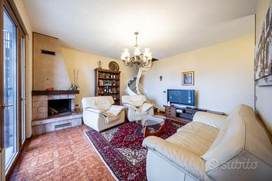 Al suo interno troviamo due unità abitative perfettamente speculari, le quali sono caratterizzate da un ingresso su luminoso soggiorno da dove godere di una meravigliosa vista panoramica sulla Val Squaranto e su Verona Est grazie alla presenza di una veranda ed infissi di grandi dimensioni e ottima fattura. Adiacente troviamo una sala da pranzo ed una cucina aperta. La zona notte è composta da due camere matrimoniali, composte da grandi finestre a tre ante le quali garantiscono luminosità durante l'intero arco della giornata e due bagni finestrati. Al piano primo troviamo un locale ad uso soffitta abitabile di circa 150mq a porzione dove poter sviluppare uno studio, una zona ricreativa per i più piccoli o dove ospitare comodamente ospiti o parenti.