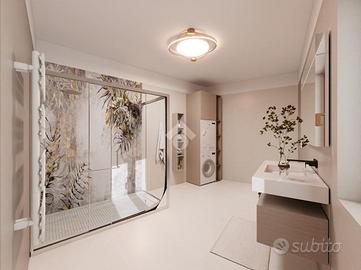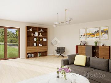 Completano la proprietà un ampio giardino e cortile esterno di circa 450 mq, un'autorimessa doppia e quattro posti auto. Il riscaldamento è autonomo a gas GPL con possibilità di allaccio alla rete del metano.