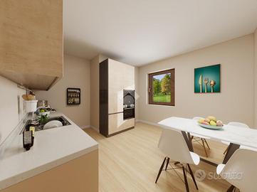 AL PIANO TERRA si trova un appartamento trilocale interamente da ristrutturare, composto da ingresso su disimpegno, cucina abitabile, ampio soggiorno, bagno, ripostiglio e camera da letto matrimoniale, con accesso diretto al giardino privato.