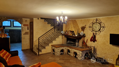 Nel piano seminterrato una sala hobby con camino realizzato a mano con pietra e roccia, pavimento rustico, arco in muratura che conduce in un'altra stanza ove troviamo uno studio, una cantina/ripostiglio, armadio a muro, spazio per lavatrice, asciugatrice, pozzetto e forno. In questo livello possibilità secondo appartamento con predisposizione bagno e cucina.