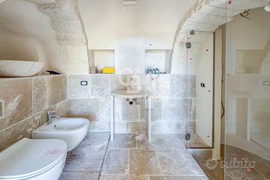 La residenza principale è stata concepita per offrire comfort e calore sin dal primo istante. Appena varcata la soglia, un accogliente salottino introduce agli ambienti privati, caratterizzati da volumi generosi e nicchie cariche di storia. La zona notte comprende una camera singola e una spaziosa camera matrimoniale, quest'ultima arricchita da una vasca da bagno dal design elegante, pensata per creare un angolo di puro benessere e relax tra le mura in pietra. Una cucina funzionale e un bagno completo ultimano gli spazi interni del corpo principale. Adiacente ma del tutto indipendente, il secondo nucleo abitativo dispone di una camera da letto con angolo cottura e bagno riservato. Questa configurazione offre una flessibilità straordinaria, risultando ideale per chi desidera ospitare amici e parenti in totale privacy o per chi intende destinare la proprietà al circuito degli affitti turistici di lusso, un segmento che vede la Puglia ai vertici delle richieste internazionali.
