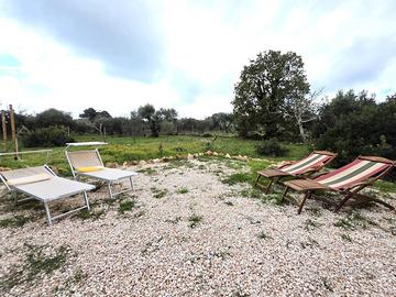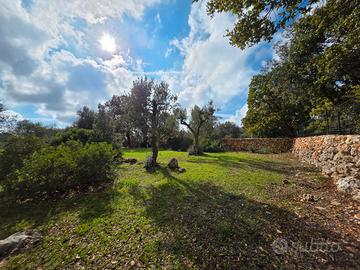 L'esteso terreno pianeggiante (poco meno di 9000 mq) è totalmente recintato; possiede alberi da frutto, querce secolari, ulivi e gli immancabili antichi muretti a secco.