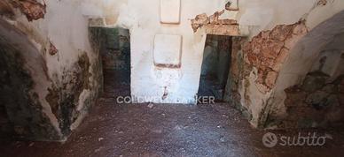 Munito di camino con le classiche sedute in pietra ai lati, consente di utilizzare, come da ipotesi di ristrutturazione suggerita, la zona giorno nella parte anteriore e una suggestiva e accogliente camera da letto e bagno nella parte posteriore.