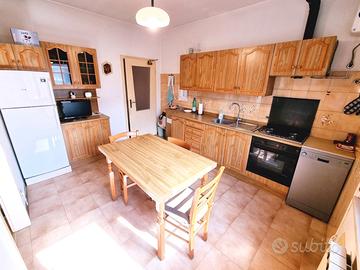 salendo al piano primo, l'atrio di ingresso ci accompagna alla cucina separata ed abitabile ed al soggiorno, con uscita sulla terrazza esposta ad ovest e dove, con un semplice ammodernamento, si può ridistribuire gli spazi interni, ricavando UNA ZONA GIORNO OPEN SPACE di OLTRE 30 mq (come da piantina allegata in foto), proseguendo attraverso il corridoio troviamo la prima camera matrimoniale di 17 mq, il bagno finestrato con vasca ed altre due comode camere da letto, di cui una matrimoniale e dotata di bagno personale.